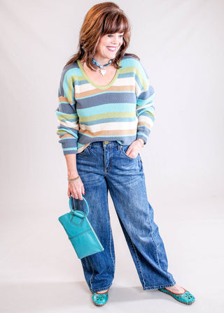 Tribal Sportswear Combed Cotton U Neck Waffle Sweater with Long Sleeves