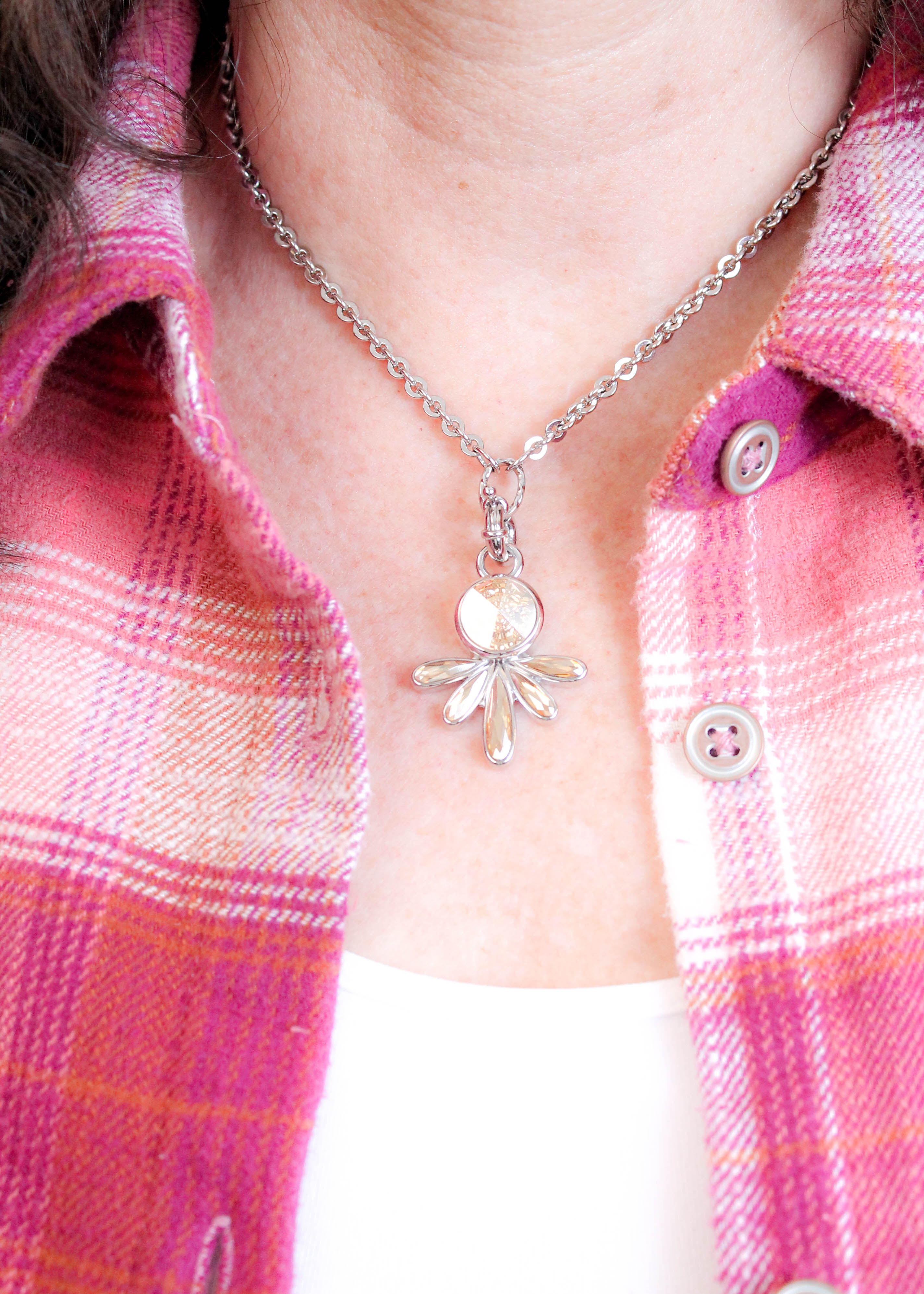 Our Styling Tips: We love this item paired with our MYKA Daisy crystal pendant in Golden Shadow, pictured here. It would also look great with any of the MYKA detachable pendants and matching earrings.