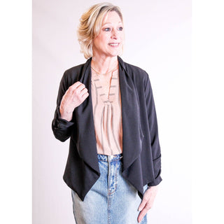 MINE Rouched 3/4 Sleeve Jacket adds a touch of class and style to just about any outfit.