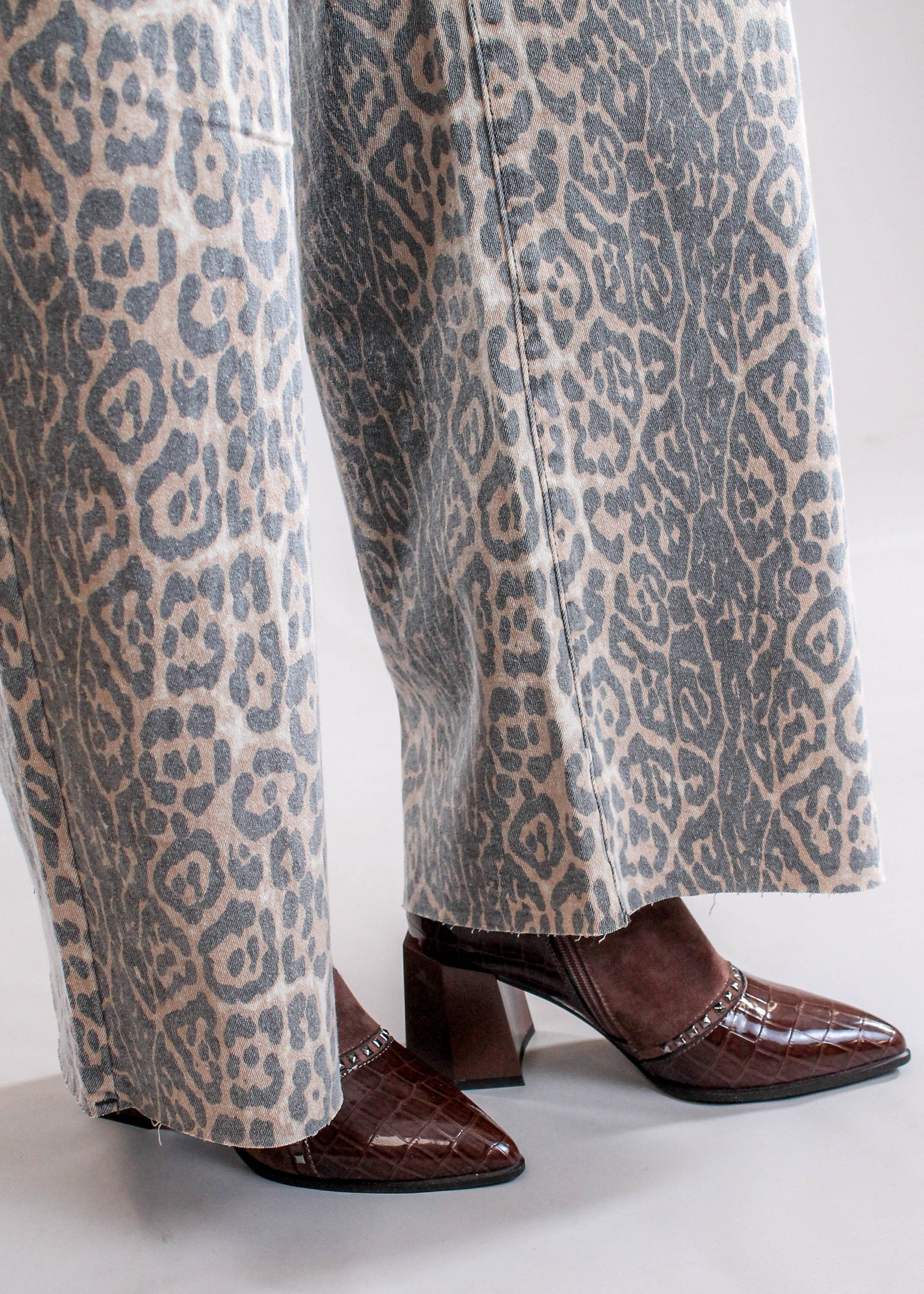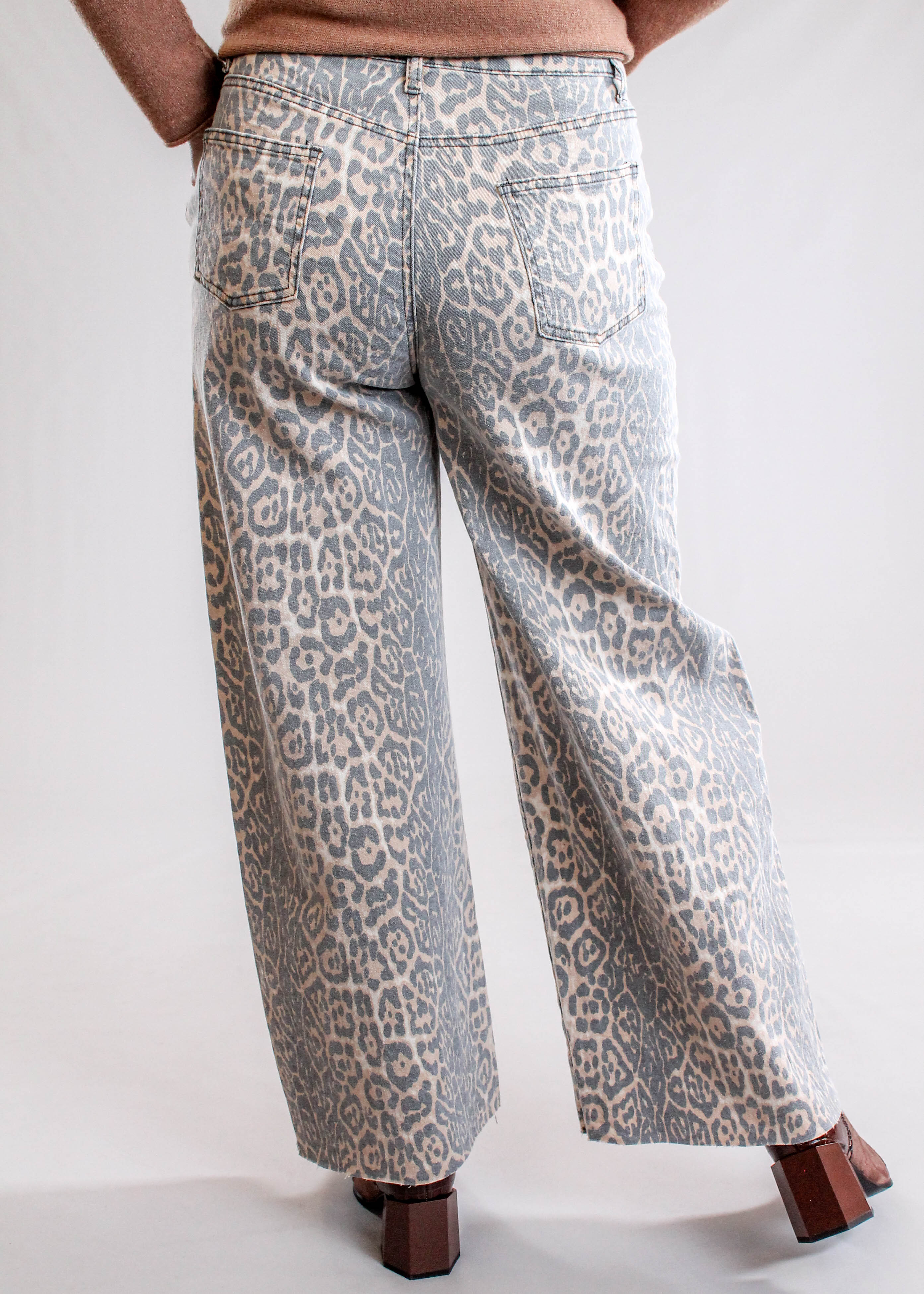 The Easel Animal Print Washed Denim Wide Leg Jean brings soft, washed denim and a subtle animal pattern together for a modern look with personality.
