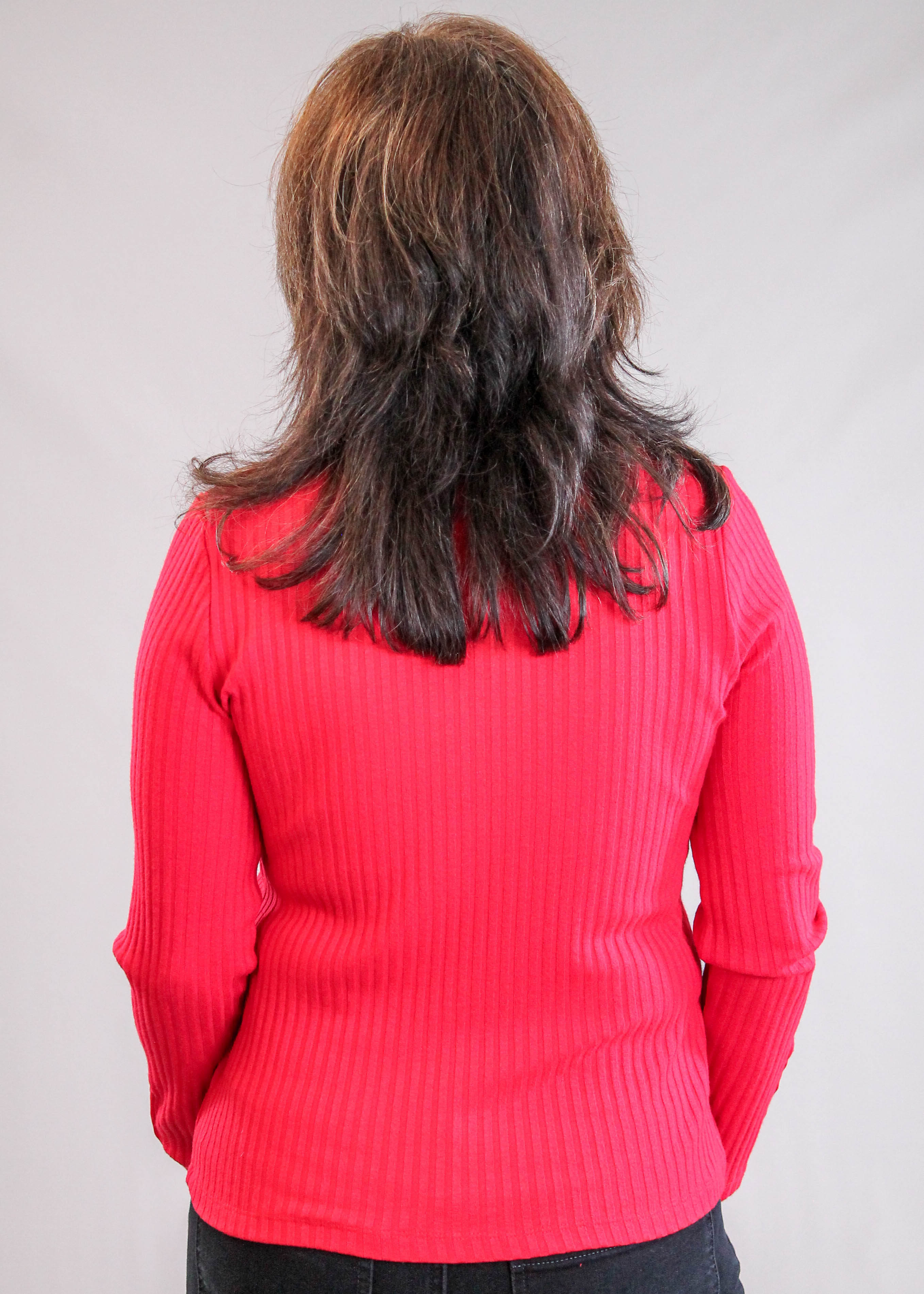 The Liverpool Long Sleeve Mock Neck Top offers a sleek silhouette in soft, stretch knit fabric that feels smooth against the skin and layers beautifully under jackets.