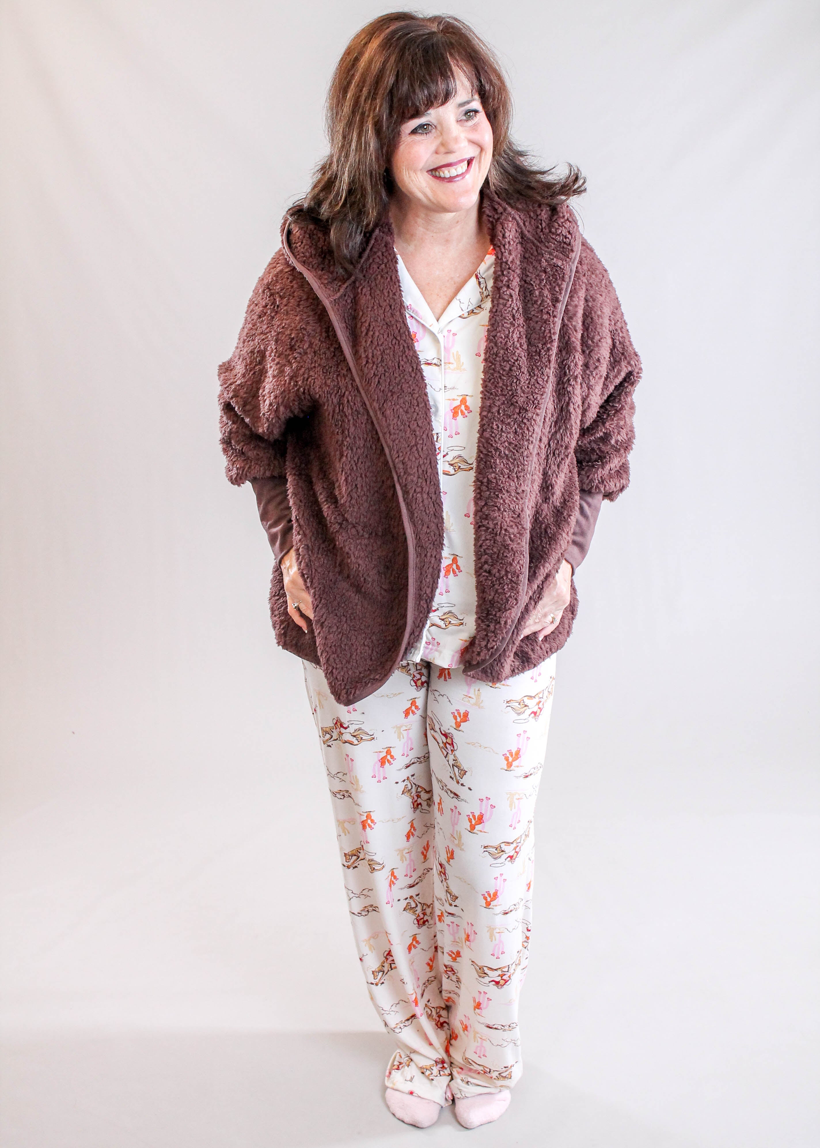 Our Styling Tips:  We love this item paired with our Hello Mello Short Sleeve Pajama Top with Cowgirls and Horses, pictured here.  It would also look great with the Hello Mello Fleece Cardigan.  Finish your look with Hello Mello Travel Blanket.