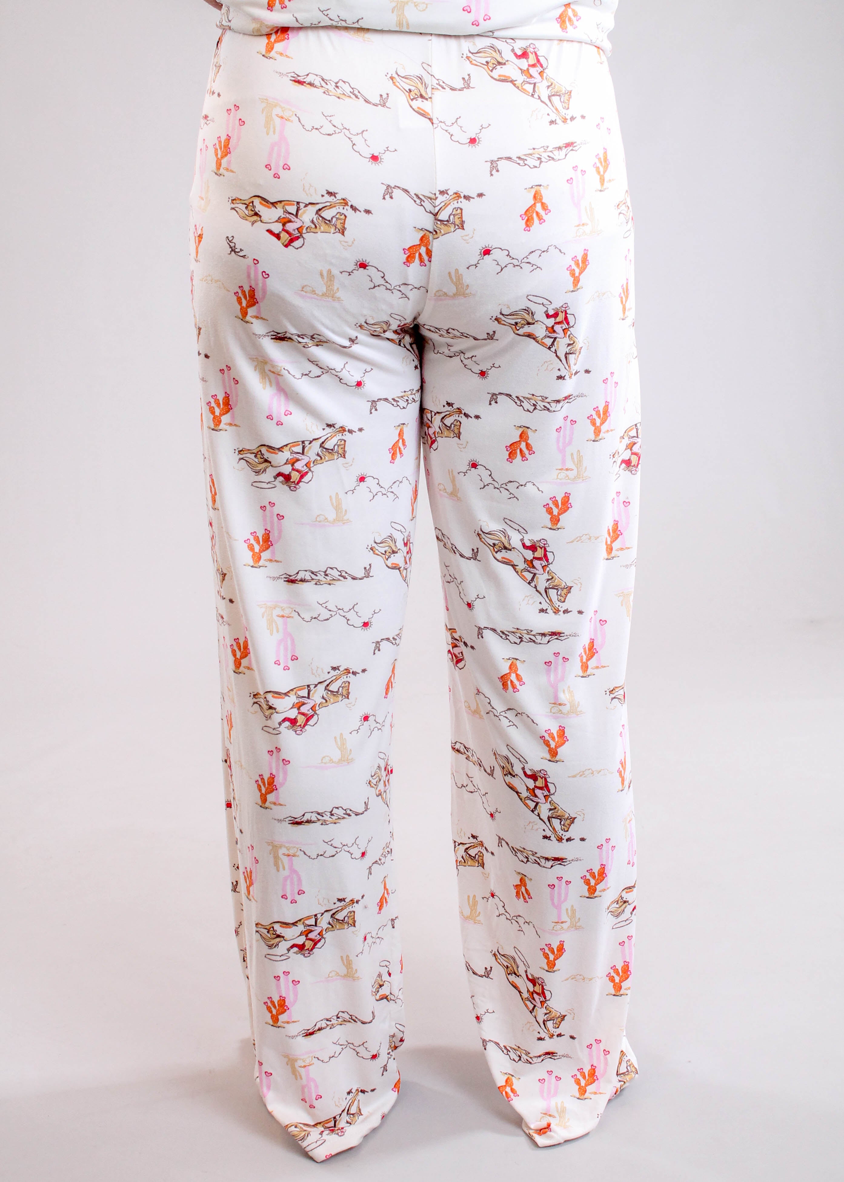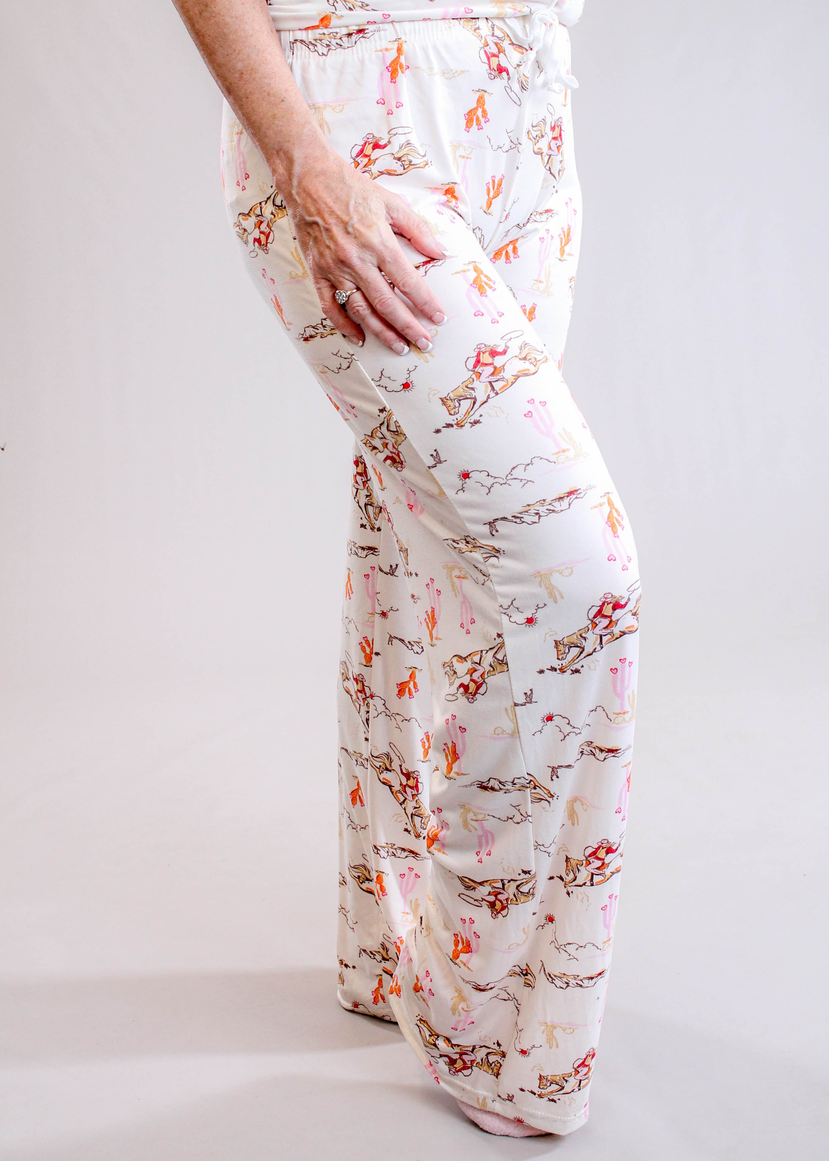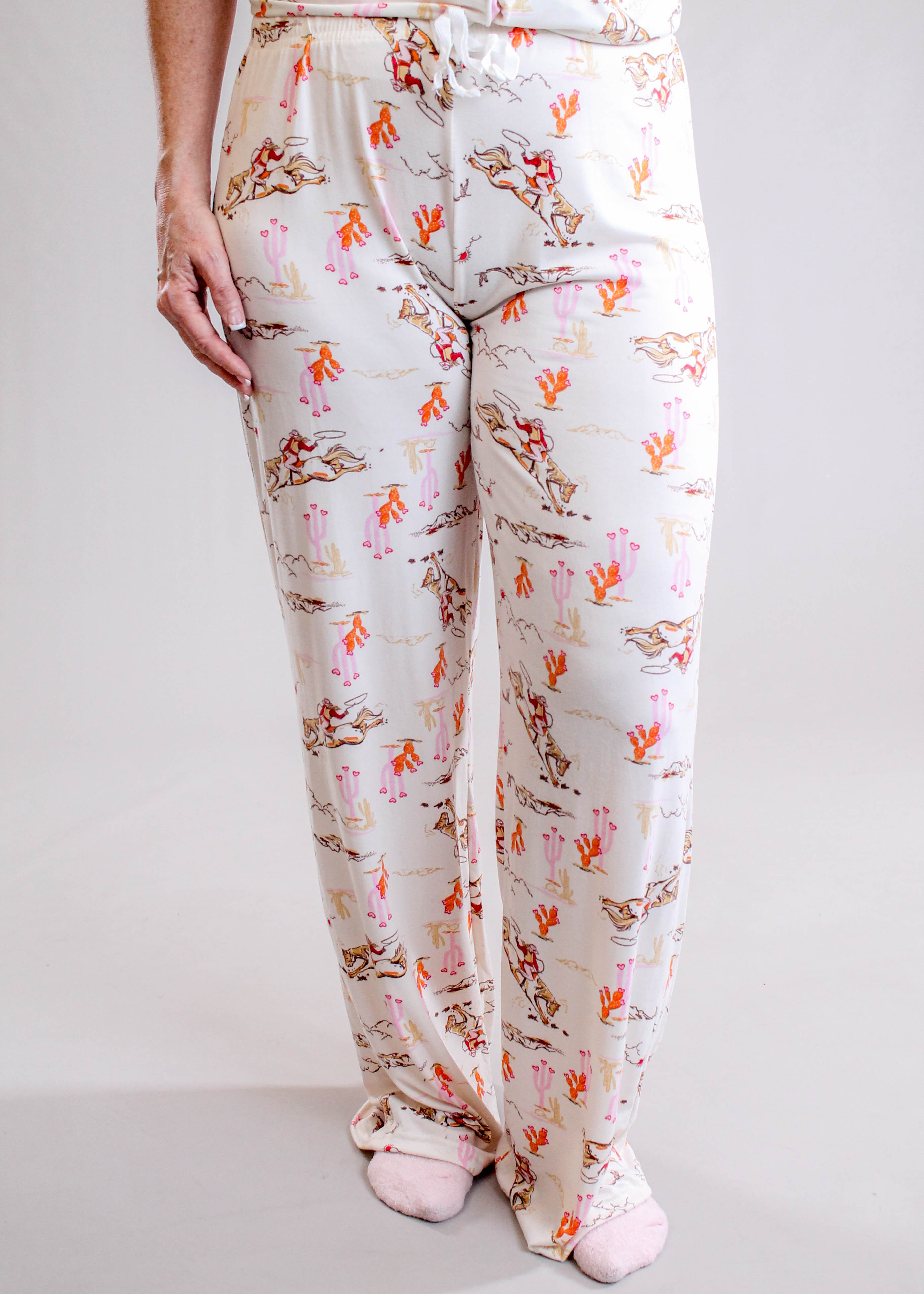 Hello Mello Drawstring Waist Pajama Pants with Cowgirls and Horses