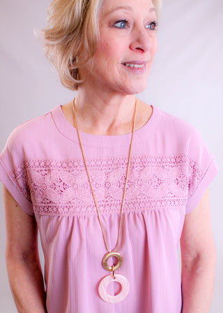 Wishlist Lace Trimmed Blouse with Short Sleeve
