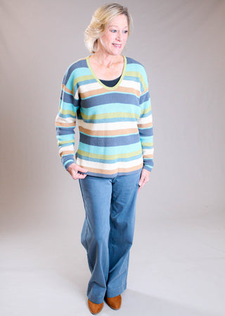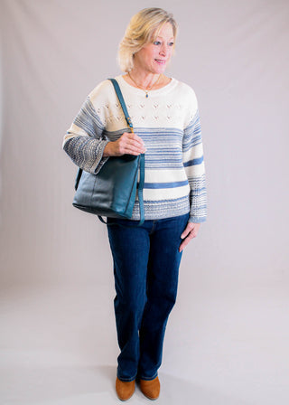 Tribal Sportswear Color Block Bell Sleeve Boat Neck Sweater