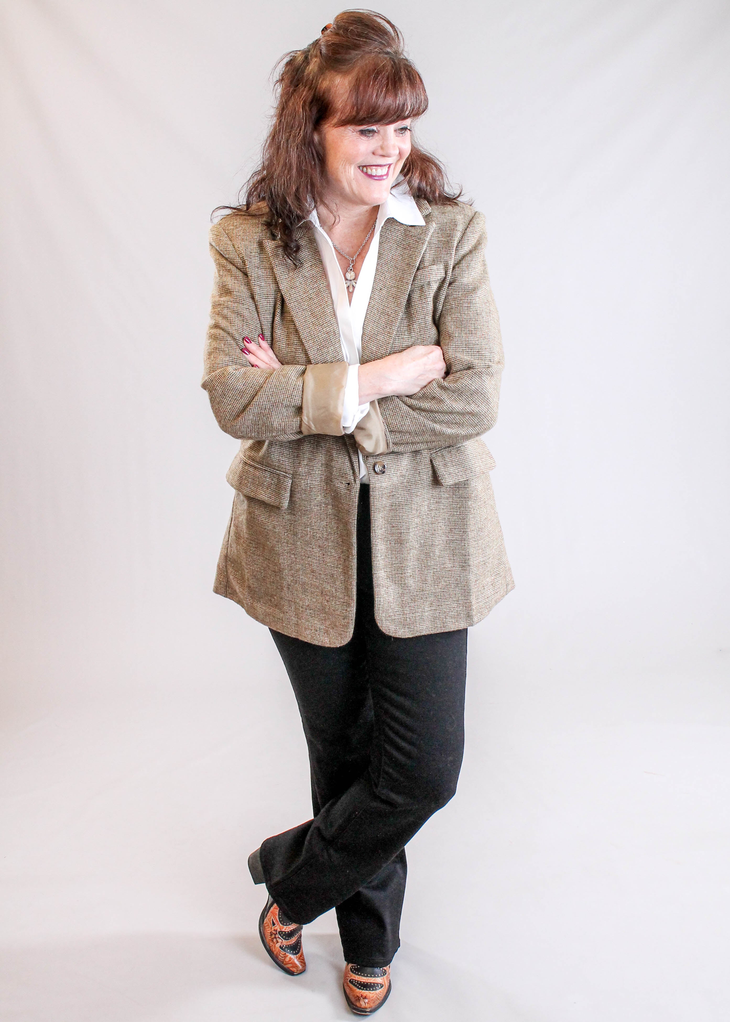 The She + Sky Tweed Blazer showcases tailored construction and subtle tweed patterns for a stylish statement.