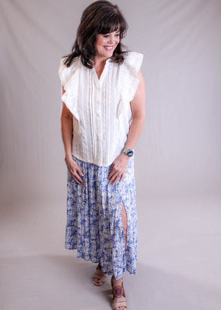 Blu Pepper Top with Eyelet Lace and Back Buttons