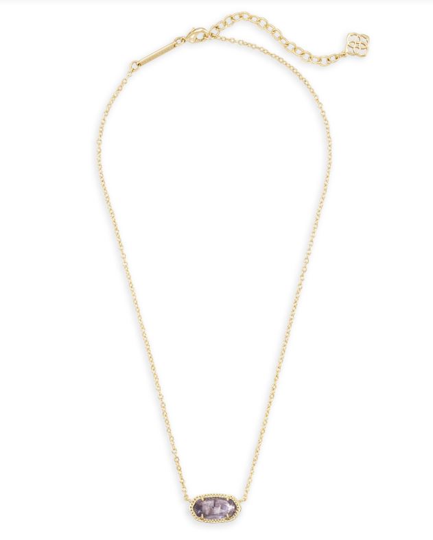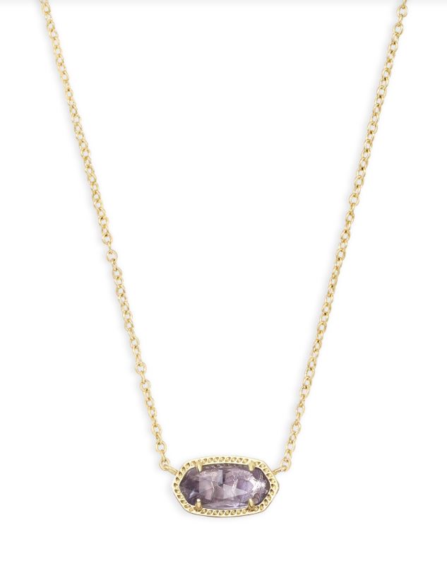 The Kendra Scott Elisa Gold Necklace with Amethyst Pendant features a luminous stone that rests gracefully at the neckline with soft, light-reflecting depth.