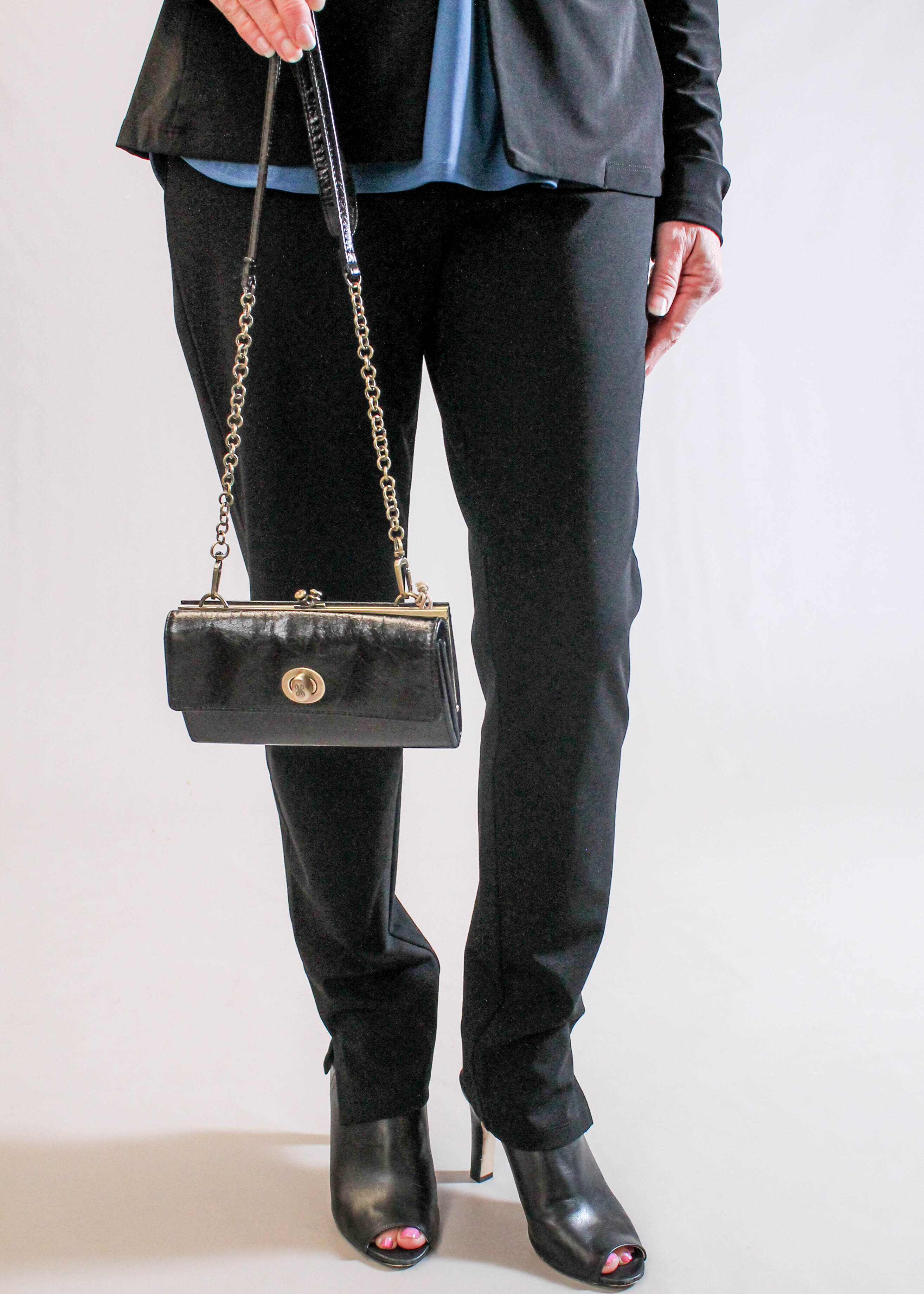 Brand Information:  Here in the store, Sympli is our number one selling brand.  This travel knit line is made in Canada and sewn by master seamstresses.  The fabric is patented and is 3oz heavier than other travel knits on the market.  This extra weight gives the fabric a beautiful drape that does not cling or lay on the body.  For this reason, the Sympli pieces are slimming and flattering to figures from a size 2-18.  Best yet, the fabric feels amazing on the body, making you look sophisticated while you feel ever so comfortable too.  This is due, in part, to just the right amount of stretch.  The line is designed to mix and match for endless wardrobing possibilities, and the fabric won’t shrink, stretch out or wrinkle.