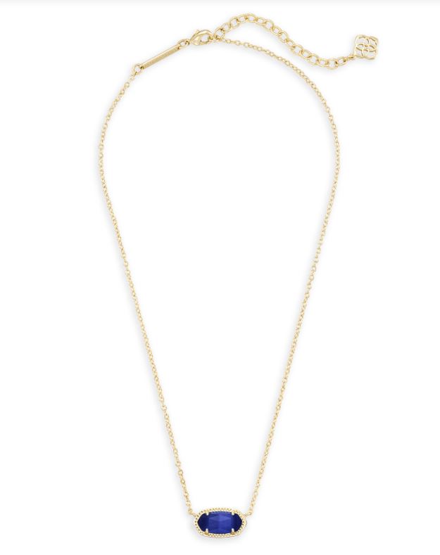 The Kendra Scott Elisa Pendant Necklace in Cobalt Blue Cat's Eye features a luminous stone that rests gracefully at the neckline with rich, light-reflecting depth.