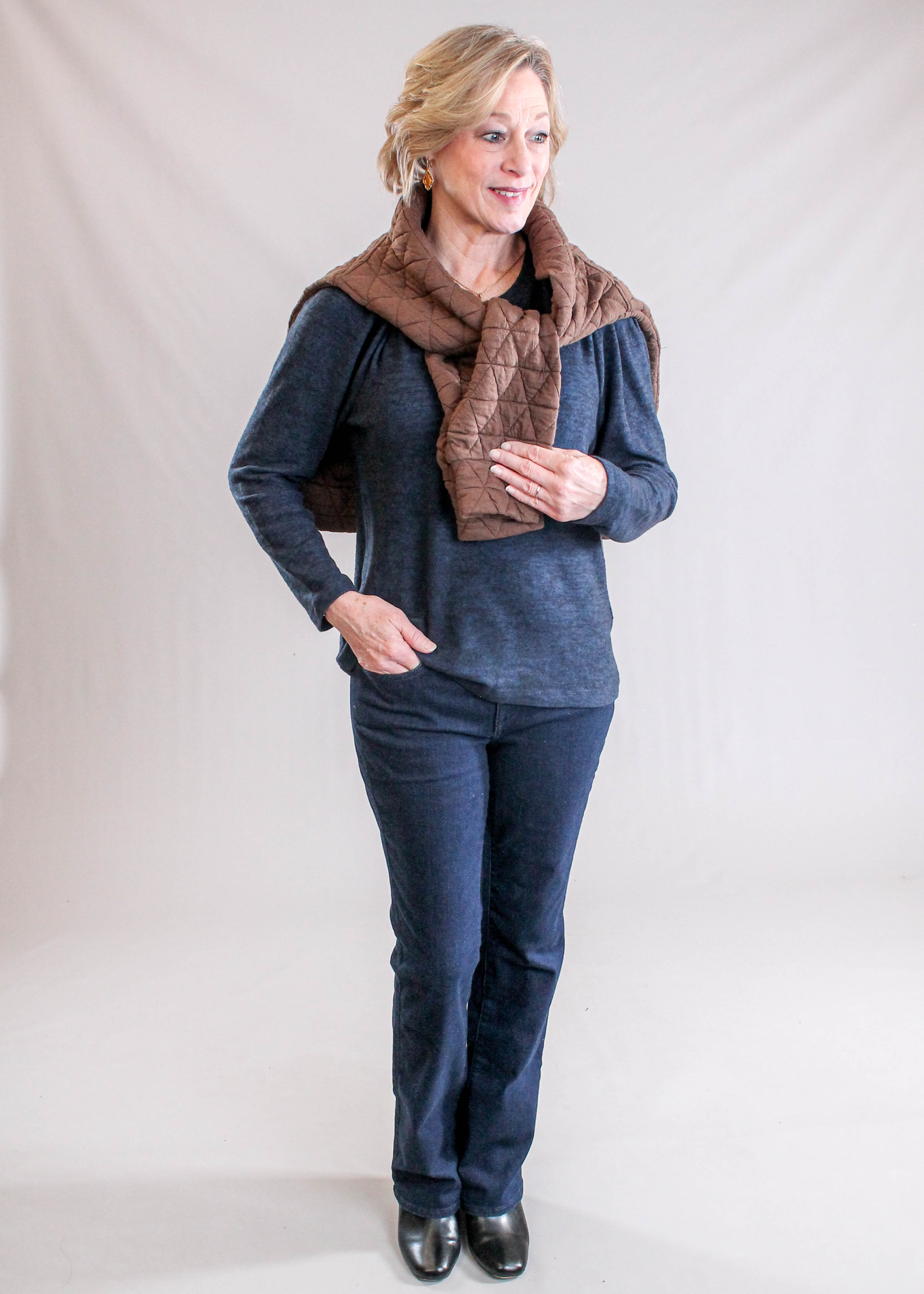 Our Styling Tips:  We love this item paired with our Liverpool Quilted Zip Neck Pullover Jacket, pictured here.  It would also look great with NYD Jeans in Barbara Bootcut.  Finish your look with our Kendra Scott Adeline Necklace and Earrings in Gold and Amber, Sold Separately.