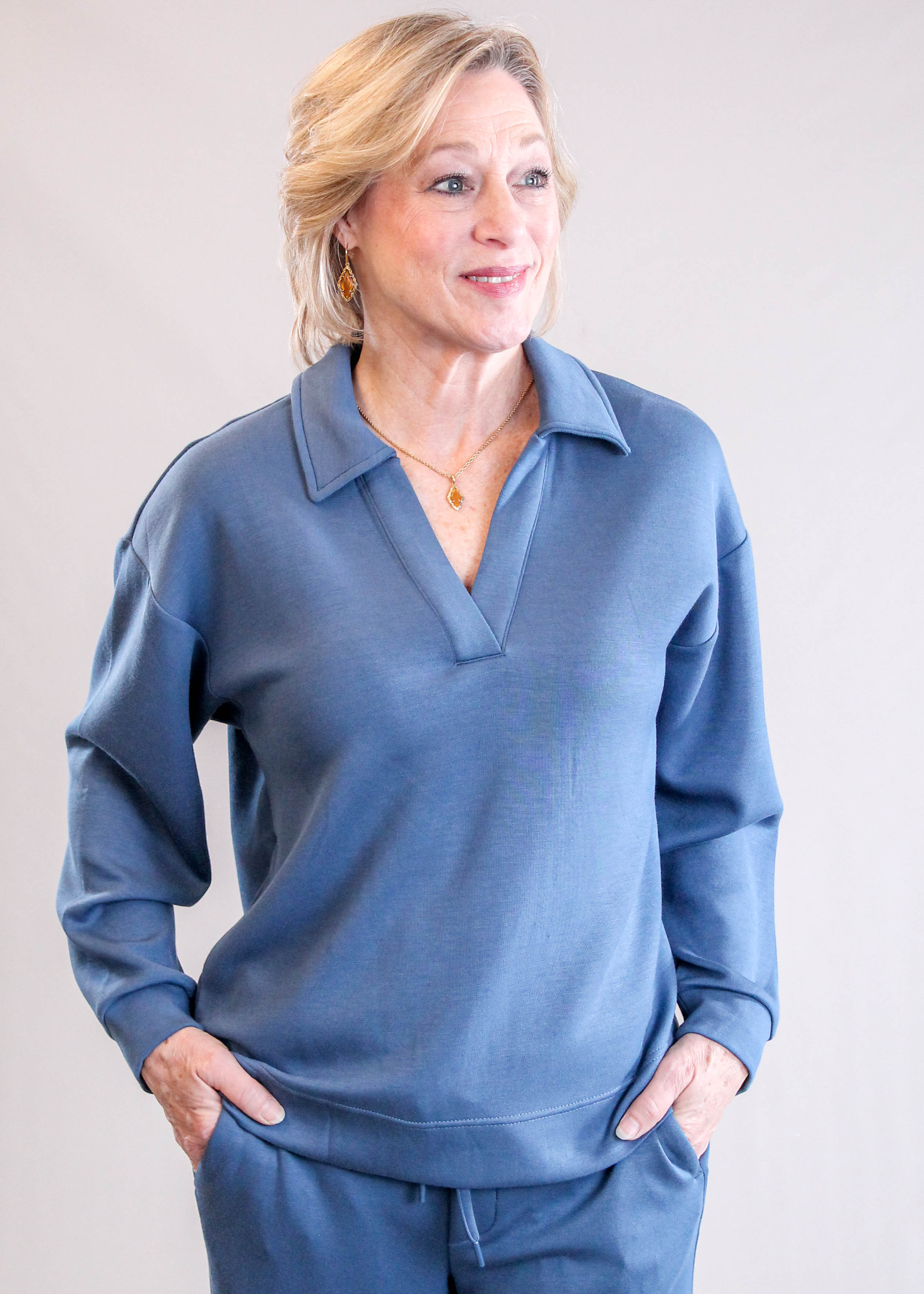 Light and comfortable, the Liverpool V Neck Popover Top with Long Sleeves is made from fluid fabric that flatters the figure and feels easy to wear.
